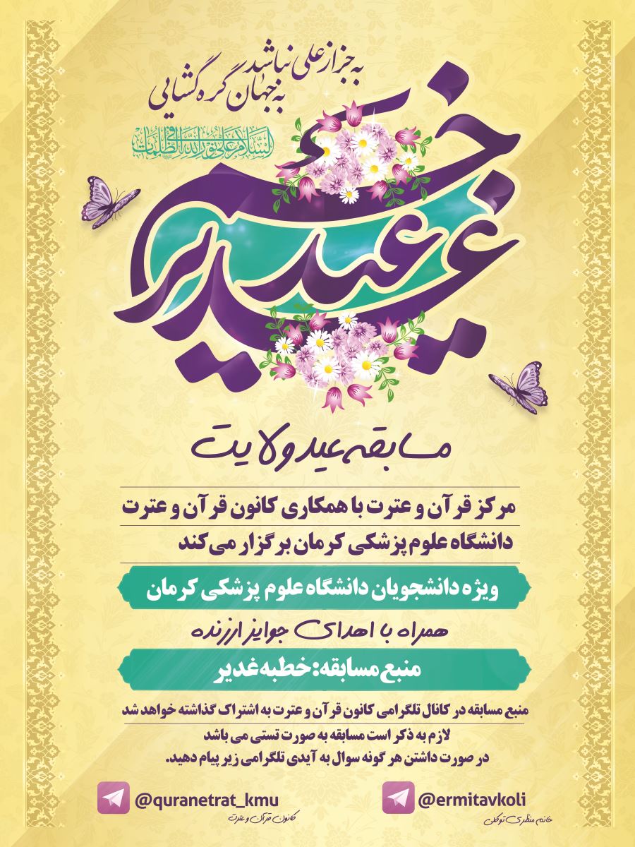 مرکز قرآن و عترت با همکاری کانون قرآن و عترت دانشگاه علوم پزشکی کرمان به مناسبت عید غدیر خم برگزار می کند :